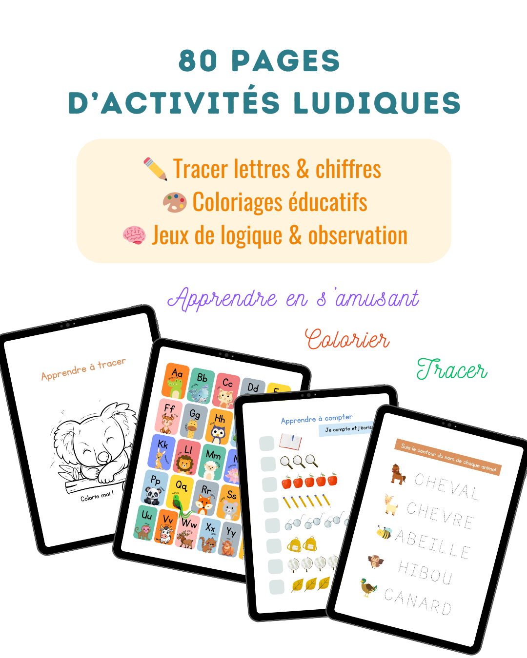 Tracer, colorier, apprendre les lettres, les chiffres et s’amuser !