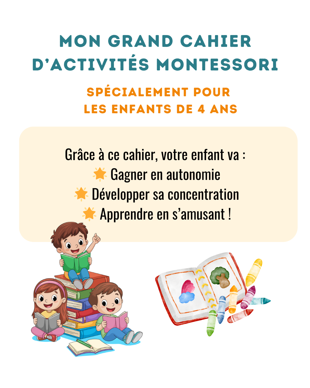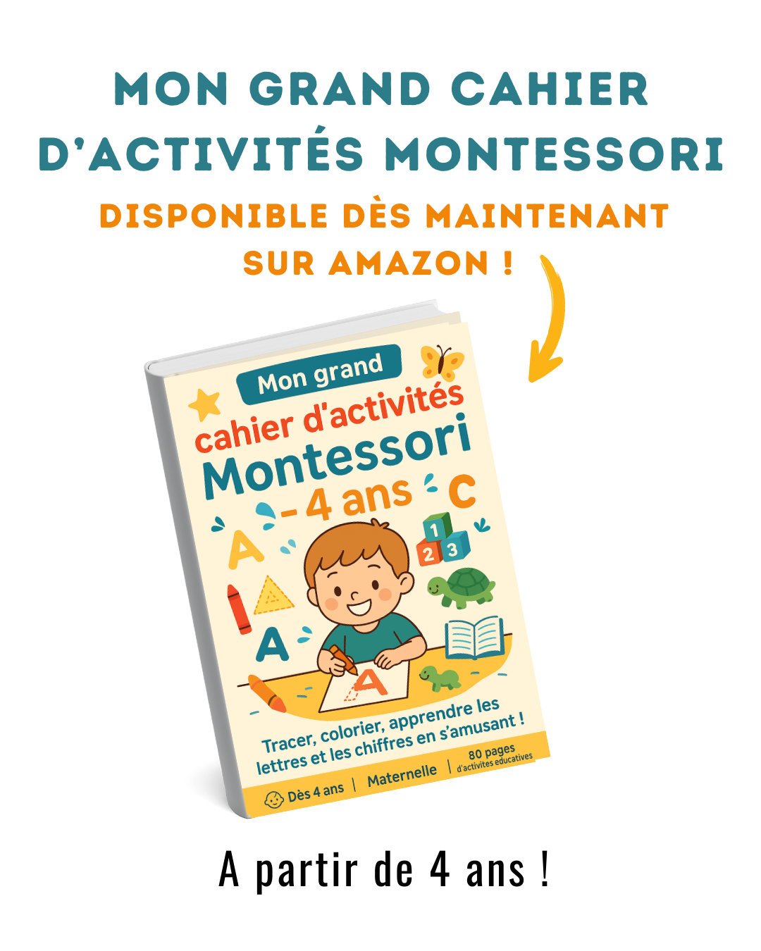 Offrez à votre enfant de 4 ans un cahier éducatif complet, ludique et inspiré de la méthode Montessori !