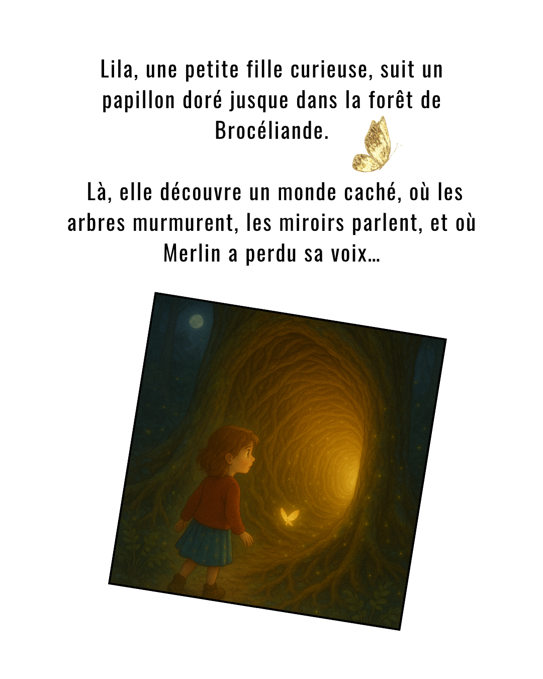 Un papillon doré. Un vieux chêne qui s’ouvre comme une porte. Une voix qui murmure.