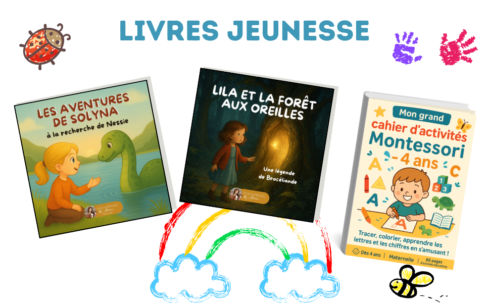 Bienvenue dans l’univers de mes livres jeunesse & éducatifs, conçus pour faire rêver, éveiller et instruire les enfants. Chaque ouvrage mêle histoires poétiques, aventures imaginaires et apprentissages ludiques pour stimuler la curiosité, la créativité et la réflexion des plus petits.